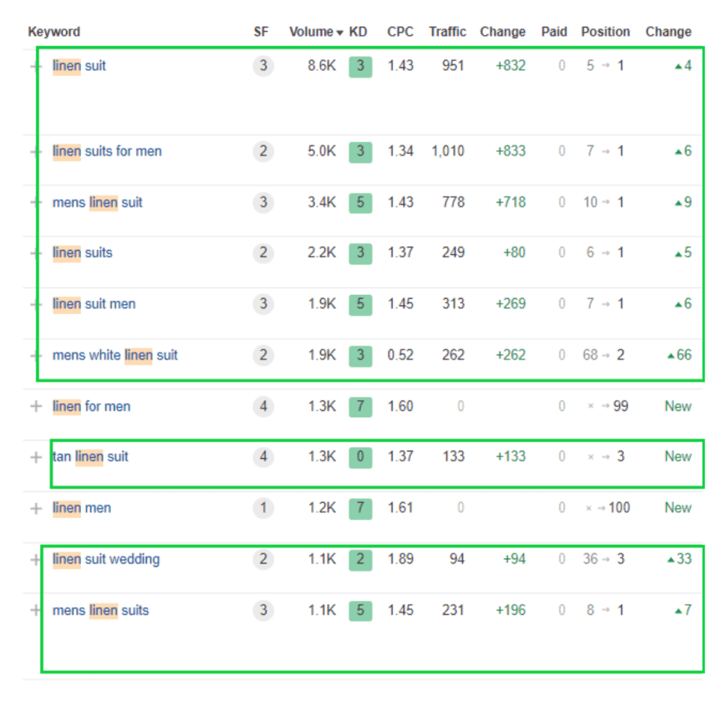 Not only is the industry competitive, but the SERP is competitive, too. There are plenty of competitors targeting keywords like “quality men’s suits,” “custom men’s suits” or “italian wool men’s suits”— and the client wasn’t ranking well as a result.