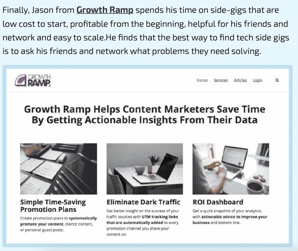 In addition, uSERP targeted high-intent publications to increase contextual backlinks and subsequently rankings on Growth Ramp that drove thousands of qualified buyers to the site each month: