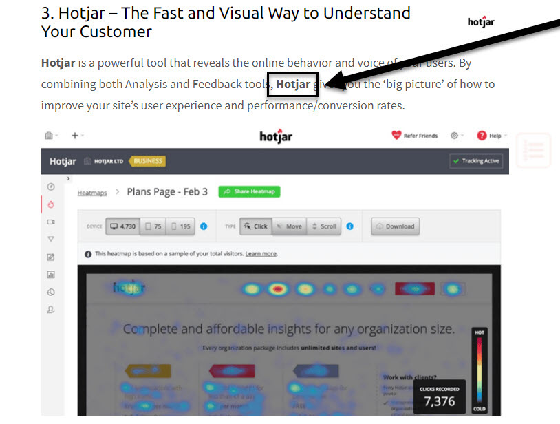 - 25% conversion rate on placing more contextually relevant links where Hotjar homepage was linked