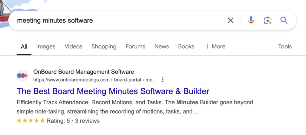 OnBoard is now ranking #1 for their main target keyword, “board portal.”