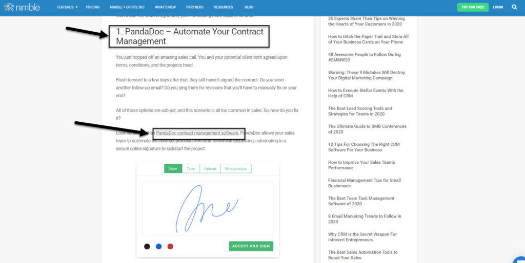 With PandaDoc, we were able to land link mentions for their landing pages on some of the top publications in their space: