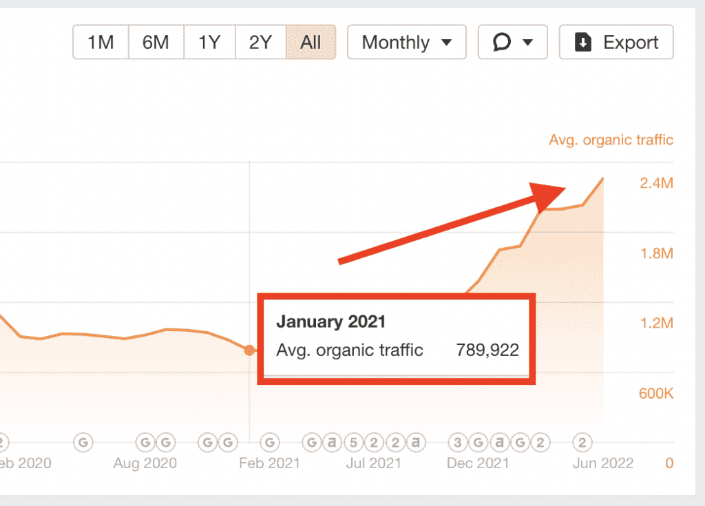 We were able to increase their traffic from 790,000 per month to 2.4 million+: