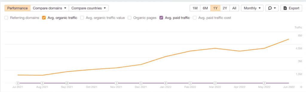 This resulted in a 500% increase in organic traffic over the course of 14 months, taking their traffic from 932,000 per month to over 5 million organic visits per month.