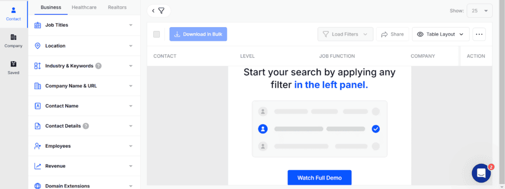 - Customizable Lead Lists: Create targeted lists by filtering contacts based on specific criteria like geography, industry, or company size.