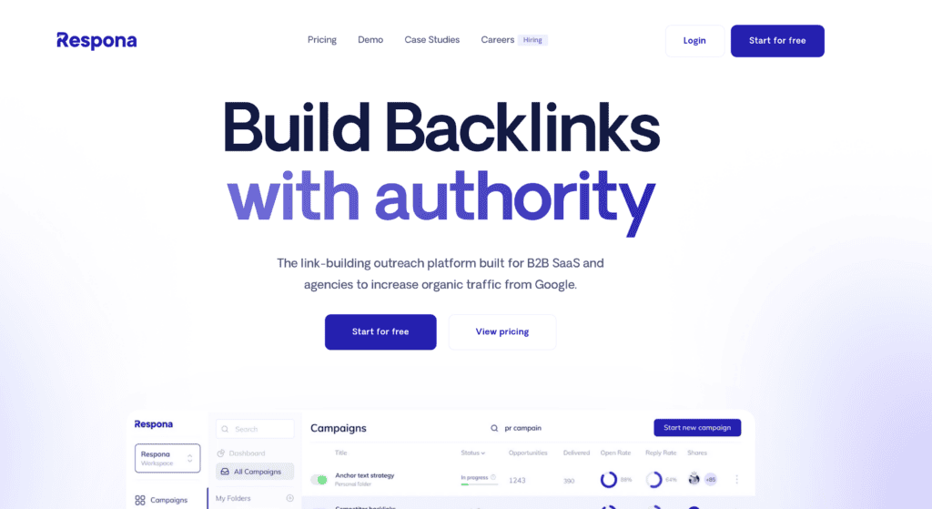 Respona is an all-in-one blogger outreach platform outfitted with all of the necessary tools to set up and launch an email campaign of any kind, be it for link building, digital PR, marketing, or even sales.