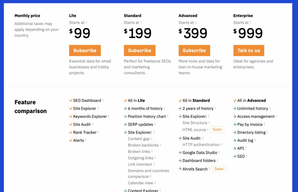 Here’s a snapshot of Ahrefs’ pricing: