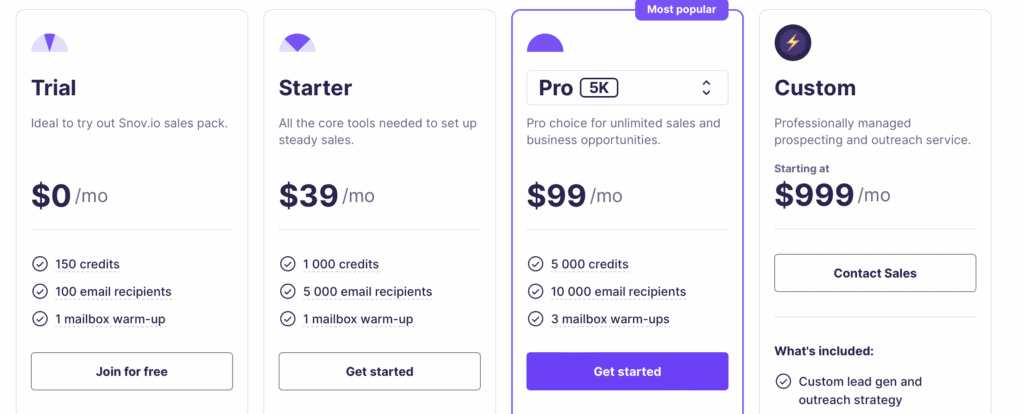 Here’s an overview of the plans that Snov.io offers: