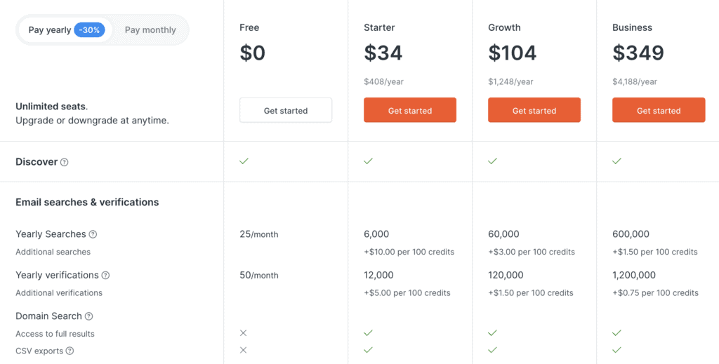 Here’s an overview of the different plans that Hunter.io offers with its email finder tool: