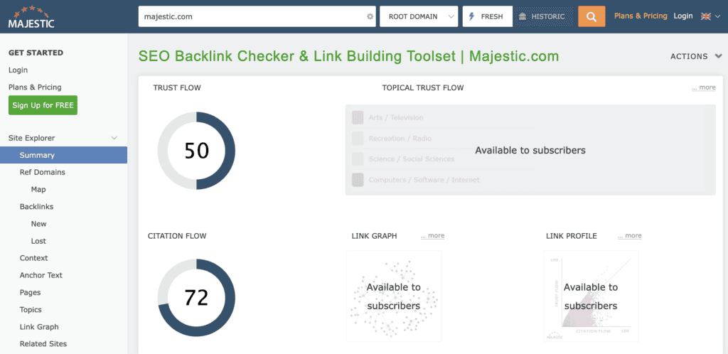 1. Majestic SEO for Monitoring Backlinks