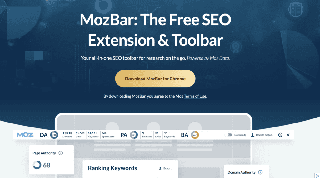 MozBar is a free Chrome extension that lets you conduct backlink research and view metrics right from the search results.