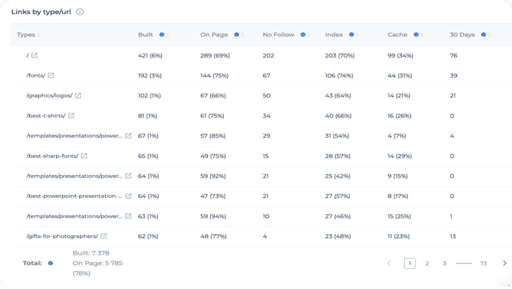 In the process of studying traffic dynamics and link growth, you can find the most important URLs for a website. Analysis for different periods of time is allowed: from 1 to 12 months. Using historical data from the last year, you can develop your own link building plan.