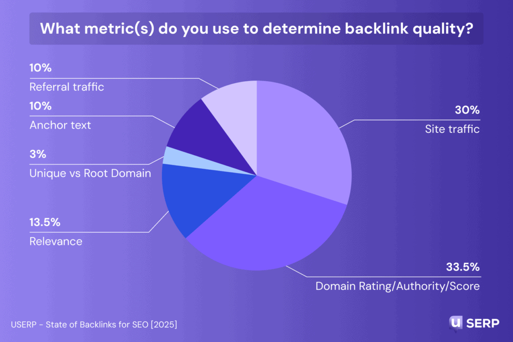 “Interesting to see that most SEO pros use traffic to determine the quality of a link. That’s actually the metric I find myself increasingly using as well. Third party metrics (like Domain Rating) have their place. But organic traffic gives you insight into how Google themselves value the site. In other words, a site with a high Domain Rating but little organic traffic likely means a link from that site will have little value.”