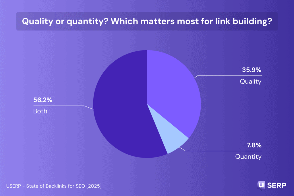 This was followed by 35.9% of participants who believe that the quality of backlinks has a higher impact and 7.8% who indicated that quantity matters more.