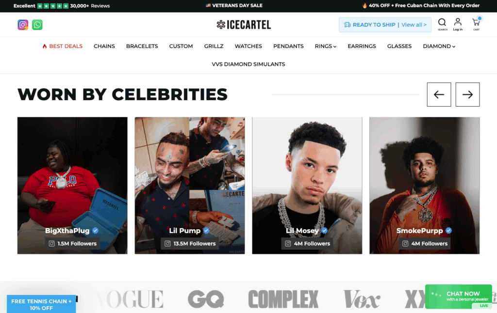 For instance, check out IceCartel. You’ll see that the brand proudly features a “worn by celebrities” section on its homepage.