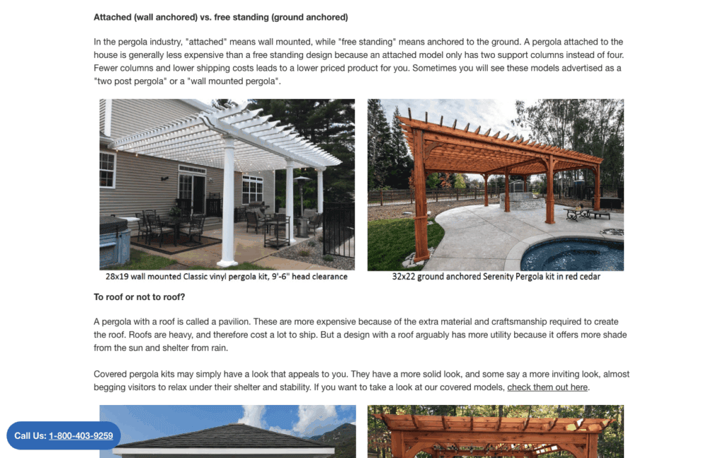 By doing so, Pergola Kits shows off the beauty and quality of its products. Much more importantly, it does so by focusing on credibility first. This makes web visitors extremely likely to perceive the business as trustworthy. Plus, it encourages them to decide to invest in one of these solutions.