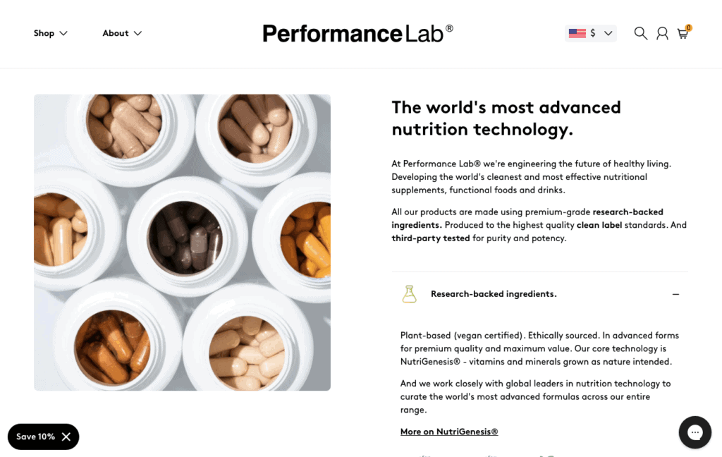 - establishes brand and product credibility and helps PerformanceLab stand out in an otherwise competitive industry