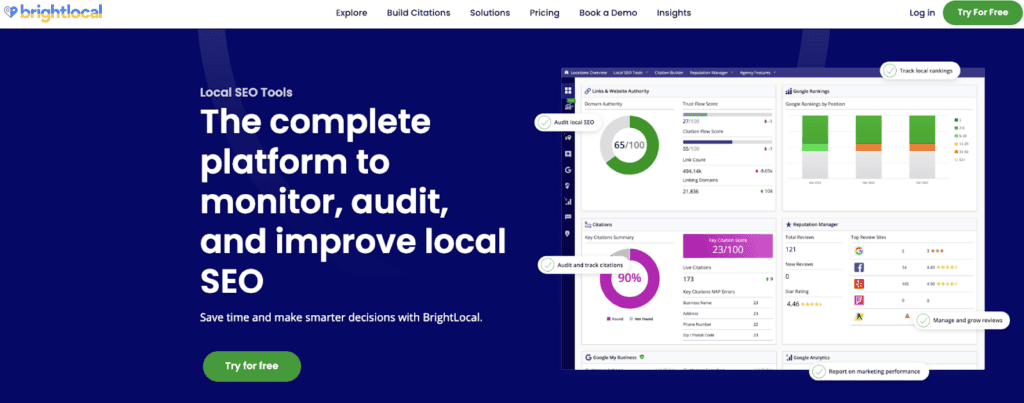 BrightLocal is a local SEO software tool that helps businesses improve their online visibility in local search results. It provides a suite of tools and services, like: