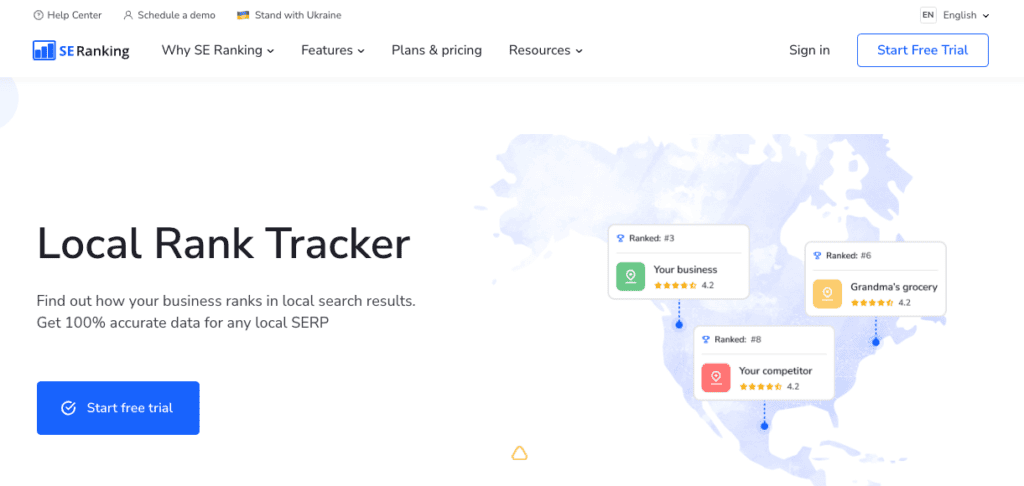 SE Ranking is a comprehensive solution for tracking your local SEO performance. Easily manage and improve your local business’s online presence from a single platform. No fuss, no muss.
