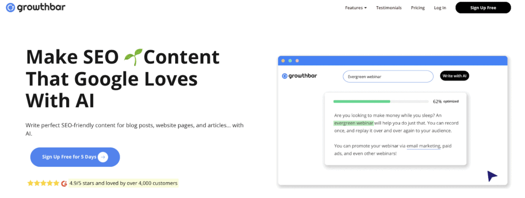 GrowthBar markets itself for its content writing capabilities and has extensive SEO features. These features allow you to get all the benefits that competitors provide.