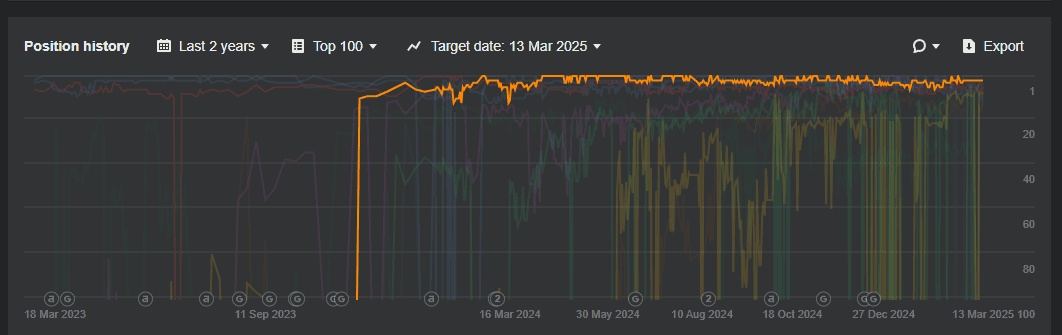 This client has now spent a full year and half owning a top-3 result for this keyword, with no end in sight.