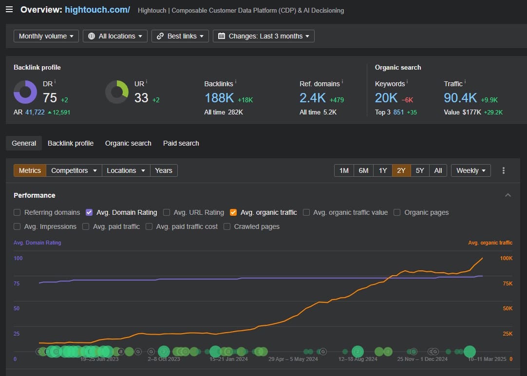 Look at the SEO progress of Hightouch over the last two years. This is the SECOND SaaS company we’ve taken from Series B to unicorn status (the first being Monday).