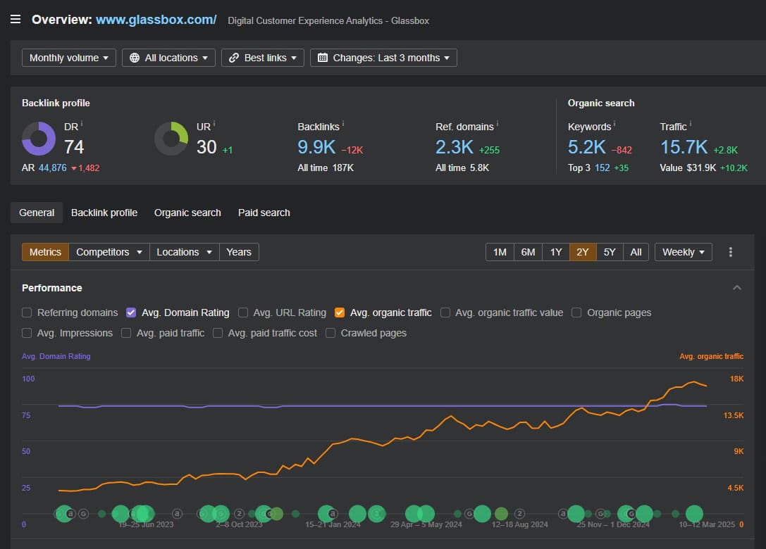 We landed organic backlinks for them from high-authority sites like G2, BigCommerce, Crunchbase, etc., and within just 3 months, their traffic had jumped by 150k visitors per month.